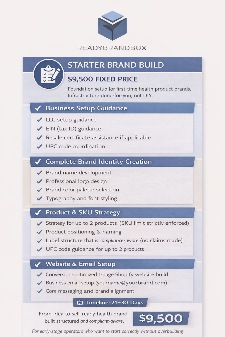 We build your brand infrastructure in the correct order — with discipline, defined milestones, and enforced SKU limits.