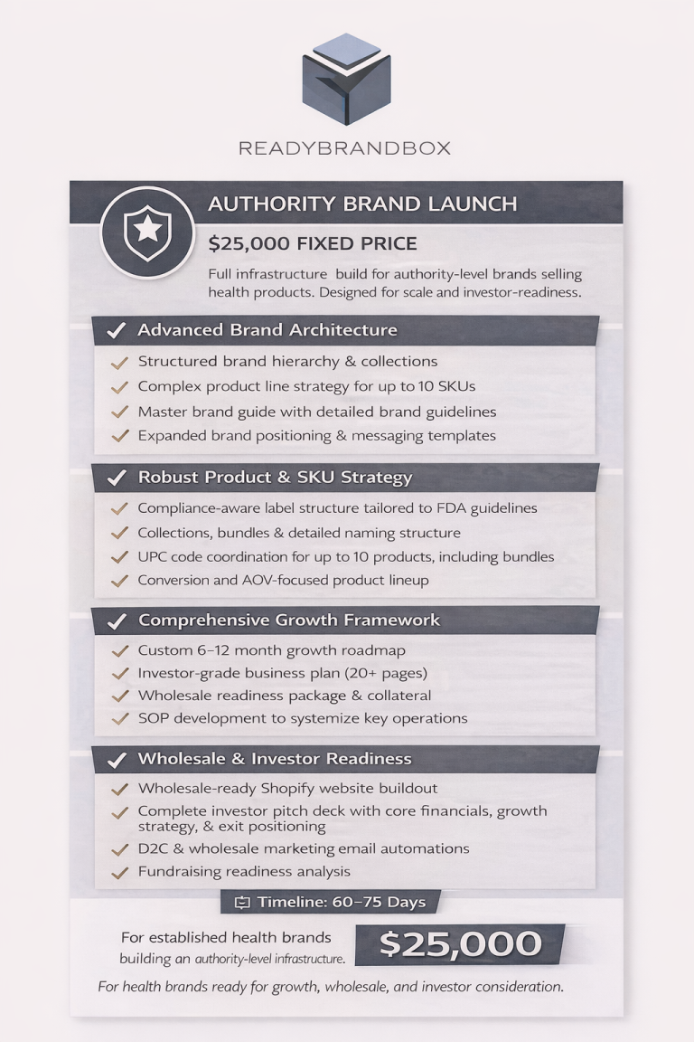 This allows us to maintain focus, quality, and clear project timelines. Submit a short application so we can confirm fit, scope, and readiness before moving forward. Turnkey Brand Solutions for Health & Wellness Brand Building